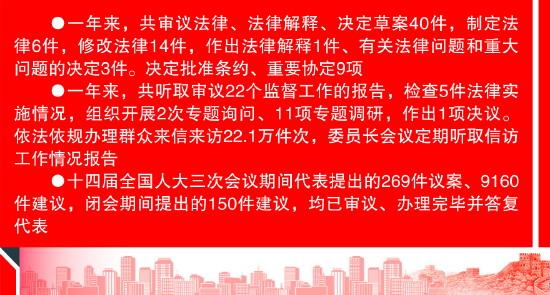 過(guò)去一年,全國(guó)人大常委會(huì)加強(qiáng)立法工作,以高質(zhì)量立法服務(wù)和保障改革發(fā)展。