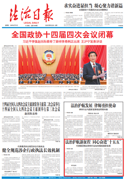 2026年全國兩會為“十五五”時期高質(zhì)量發(fā)展擘畫宏偉藍(lán)圖。作為全面依法治國的重要力量,律師行業(yè)積極融入國家發(fā)展戰(zhàn)略,從法治專業(yè)視角建言獻(xiàn)策,為“十五五”藍(lán)圖貢獻(xiàn)智慧與思考。近日,《法治日報》記者圍繞新時代律師的使命定位、服務(wù)國家戰(zhàn)略的著力點等話題,對部分來自律師行業(yè)的全國人大代表和全國政協(xié)委員進(jìn)行了采訪。
