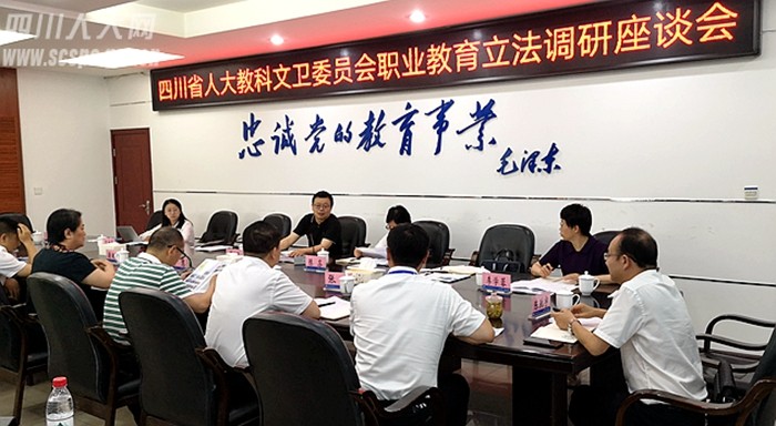 調(diào)研組與宜賓市人大、發(fā)改委、人社局、工業(yè)軍民融合局、財政局、雙城服務(wù)局及部分職業(yè)院校、產(chǎn)教融合企業(yè)代表,圍繞我省職業(yè)教育地方立法需要解決的主要問題進(jìn)行了座談。與會同志結(jié)合各自職能和學(xué)校實(shí)際,對通過地方立法促進(jìn)職業(yè)教育進(jìn)一步發(fā)展,提出了意見建議。