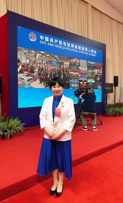 朱國萍在“中國共產(chǎn)黨與世界政黨領(lǐng)導(dǎo)人峰會”中共一大紀(jì)念館的上海分會場。(代表供圖)