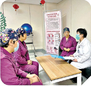 劉英才代表(右一)與婦產(chǎn)科醫(yī)護(hù)人員交流