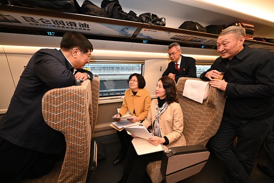 赴京途中,全國人大代表就所提議案建議展開積極討論。
