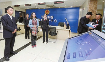 江蘇省徐州市檢察院邀請代表委員參加“走進12309,檢察服務(wù)新體驗”活動,圖為李甦雁(左三)參觀12309檢察服務(wù)中心。