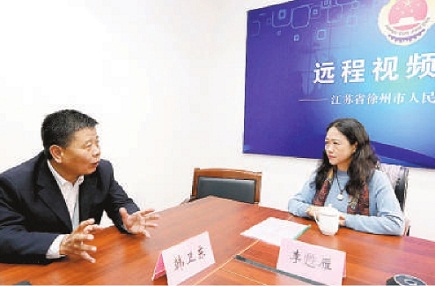 李甦雁(右)和徐州市檢察院副檢察長韓衛(wèi)東交流檢察工作。