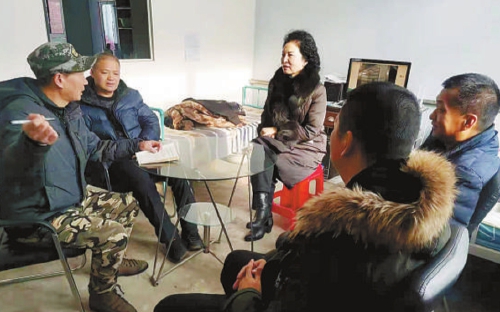 高春艷(左三)向村民宣講全國(guó)兩會(huì)精神