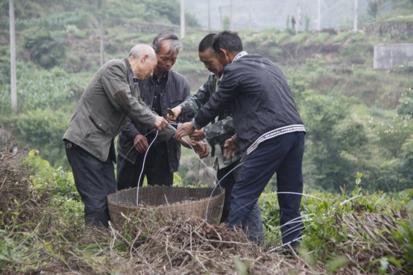 峰巖村是典型的喀斯特地貌,尤其缺水。遇到長(zhǎng)時(shí)間不下雨,全村人就得整夜排隊(duì),“攢天河水”“舀溝溝水”......2008年,剛剛擔(dān)任峰巖村黨支部書記的張濟(jì)平首先面對(duì)的困難就是村民們?nèi)彼?,他心急如焚,暗自下定決心拼命也要幫助村民找到水源。他和村里幾位黨員成立了“找水敢死隊(duì)”,怕攀崖探洞出意外,大家甚至都立下了生死狀。2個(gè)多月的時(shí)間里,他率領(lǐng)大家踏遍周邊15平方公里山脊溝壑,帶頭下探神秘莫測(cè)、無(wú)人敢進(jìn)的“槐樹天坑”,終于發(fā)現(xiàn)清冽甘甜的泉水,并抽送到全體村民家中。
