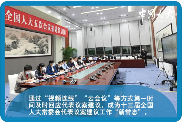 從代表提出議案建議,到收到相關(guān)部門反饋,需要多長時間?“馬上辦”“云對話”……通過“視頻連線”“云會議”等方式第一時間及時回應(yīng)代表議案建議,成為十三屆全國人大常委會代表議案建議工作的“新常態(tài)”。