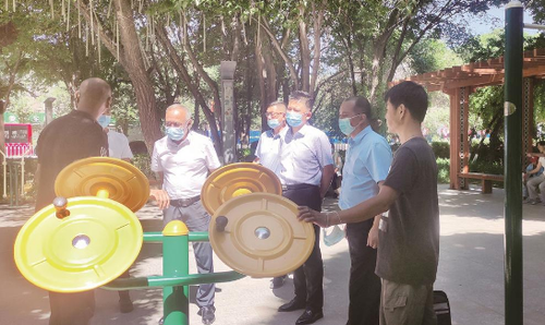 新疆維吾爾自治區(qū)烏蘇市政協(xié)日前開展重點提案督辦協(xié)商。圖為委員們現(xiàn)場了解公共體育場所設(shè)施建設(shè)情況。謝姍姍 攝