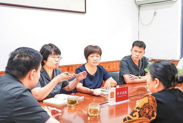 “共享法庭不僅是一個(gè)物理空間,更是一個(gè)制度、一份理念;庭務(wù)主任也不只是一個(gè)職務(wù),而是一種氛圍、一份行動(dòng)?!睏顕儆凶约旱睦斫?,“共享法庭就是讓越來越多人參與到普法、知法、懂法、守法的氛圍里。我特別想在‘家門口’帶動(dòng)這樣的法治氛圍?!保ㄓ嘟ㄈA 潘墨欽)