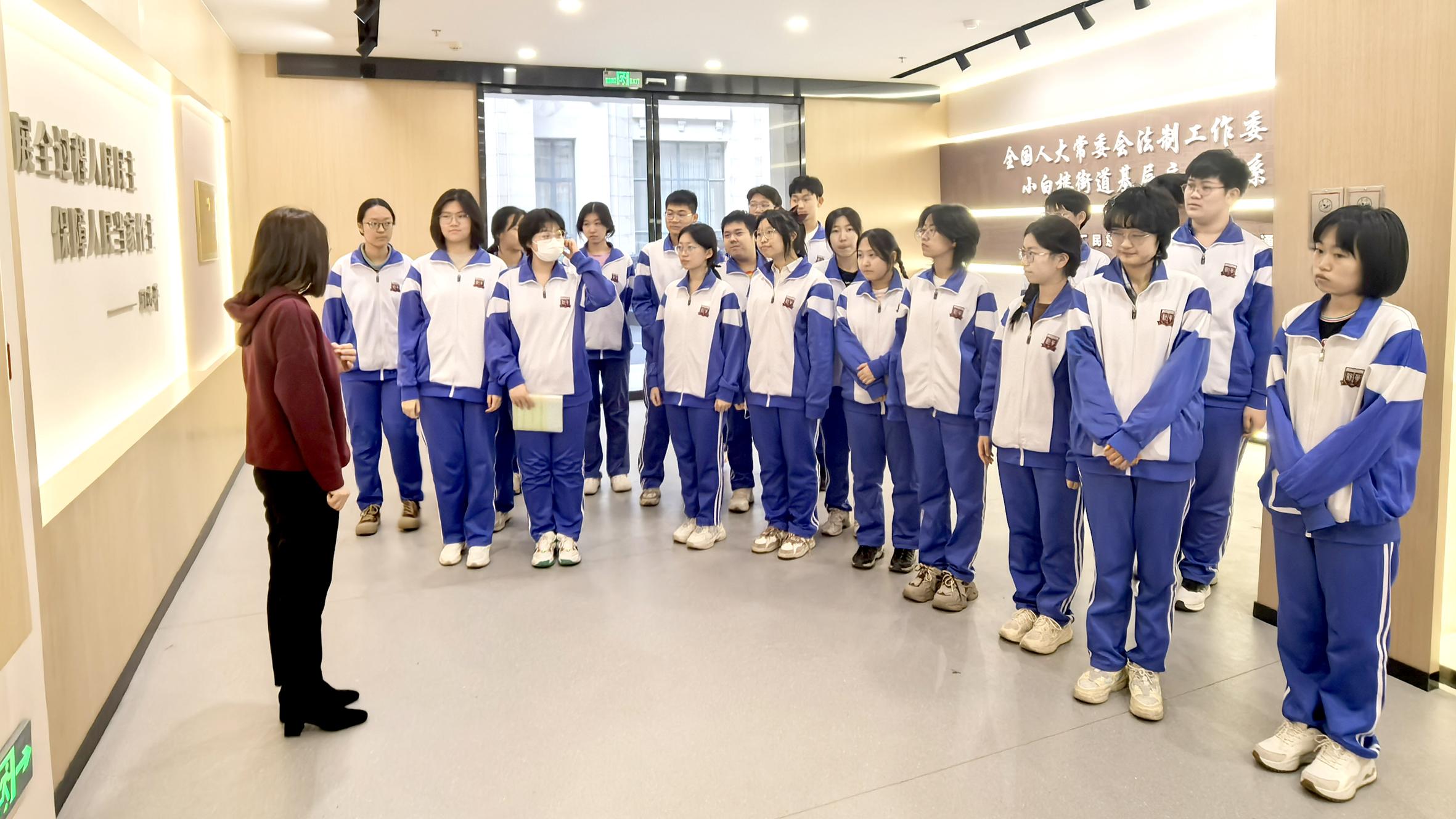 天津市新華中學學生在小白樓街道基層立法聯系點開展“民主小課堂”活動。
