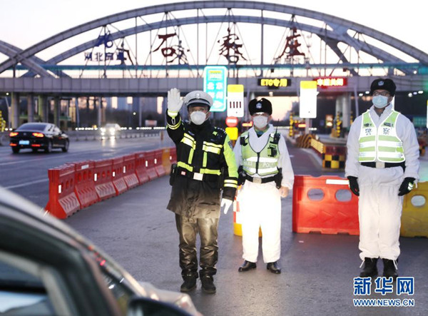 1月10日,石家莊市公安局高新技術(shù)產(chǎn)業(yè)開(kāi)發(fā)區(qū)公安分局民警在藁城區(qū)通往市區(qū)的路口執(zhí)勤。