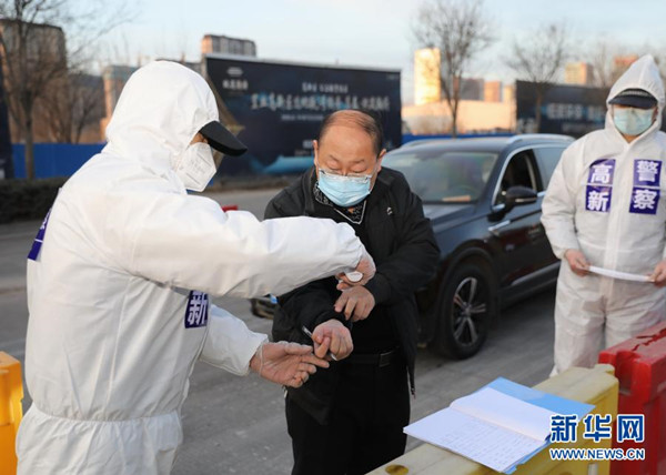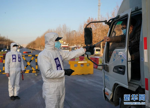 1月10日,石家莊市公安局裕華區(qū)交通警察大隊(duì)民警檢查外出車(chē)倆和人員的證件。