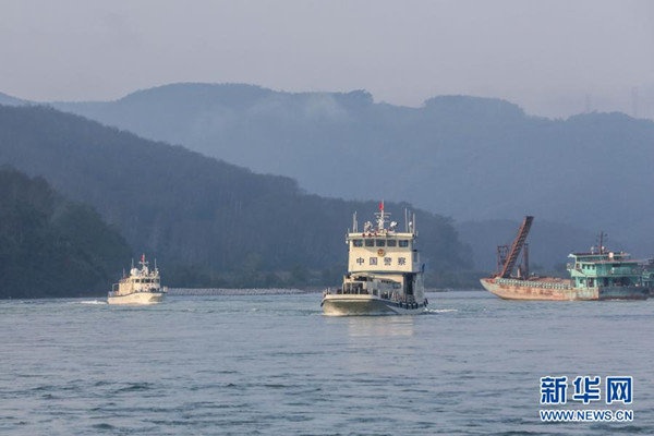 2月23日,第102次中老緬泰湄公河聯(lián)合巡邏執(zhí)法編隊啟航,中方執(zhí)法艇編隊巡航經(jīng)過瀾滄江景哈水域?! ⌒氯A社發(fā)(張壽晨 攝)