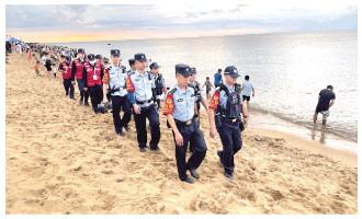進入夏季以來,海南省公安廳海岸警察總隊加強顯性用警,警力下沉一線,提高見警率管事率,不斷細化方法措施,力保轄區(qū)景區(qū)、港口平安和轄區(qū)群眾、游客安全。圖為海口市公安局美蘭分局紅島海岸派出所民警和紅海義警隊伍開展治安巡邏。