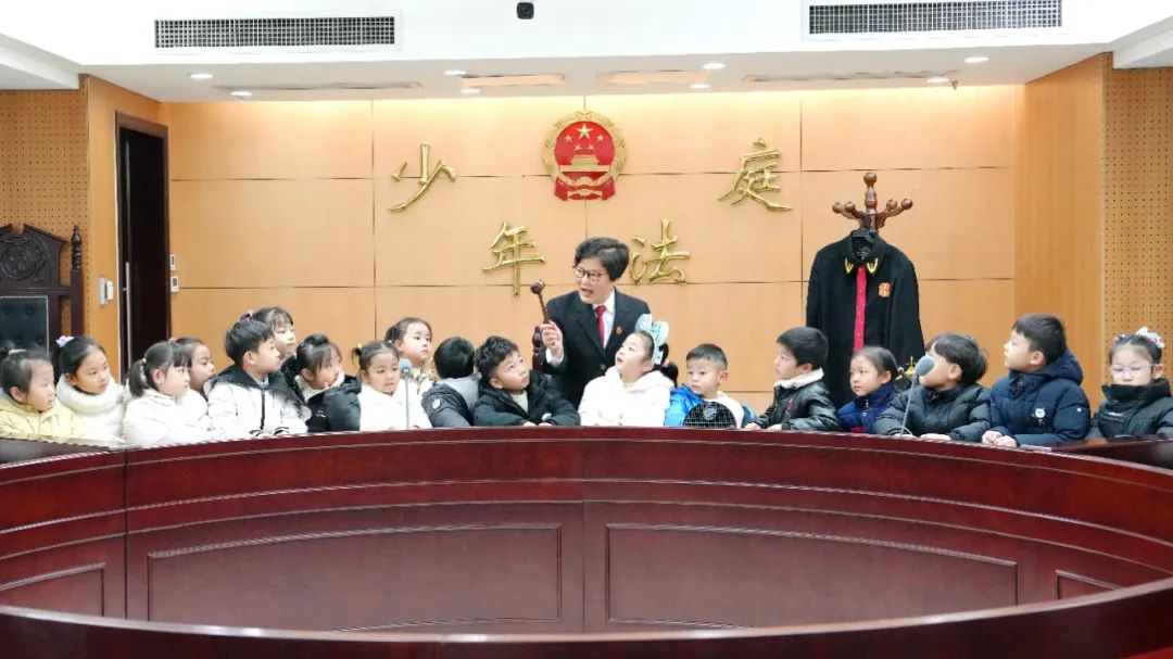 近日,江蘇省徐州市中級人民法院舉辦“憲法宣傳周法院開放日”主題活動,100余名泉山區(qū)教工幼兒園師生走進法院,“零距離”體驗法院工作,感受法律魅力。圖為法官向小朋友講解法徽、法槌的象征和意義。