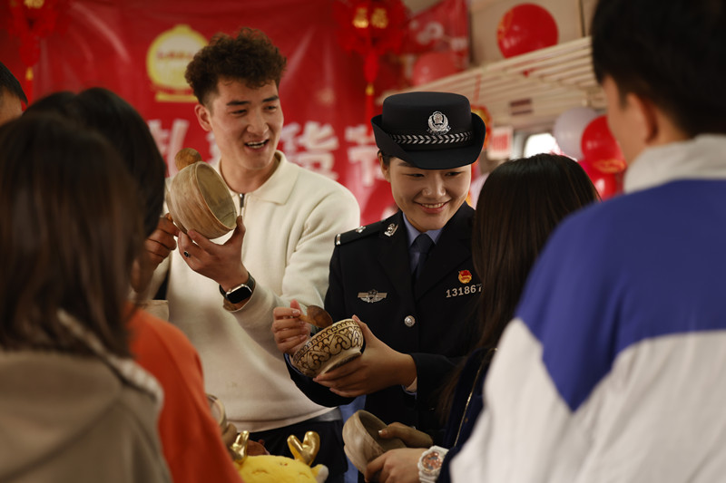 近日,在由和田開往烏魯木齊的7558次列車上,一年一度的列車流動(dòng)巴扎(集市)年貨節(jié)“開市”。烏魯木齊鐵路公安局庫爾勒公安處乘警支隊(duì)抽調(diào)骨干民警值乘,全力保障守護(hù)列車流動(dòng)巴扎,積極服務(wù)廣大旅客出行、購物需求。