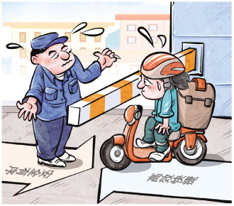 近年來,人們在享受外賣、快遞便捷服務的同時,外賣員、快遞員因能否進小區(qū)、騎電動車橫沖直撞、亂停放等問題屢屢與小區(qū)保安發(fā)生沖突。