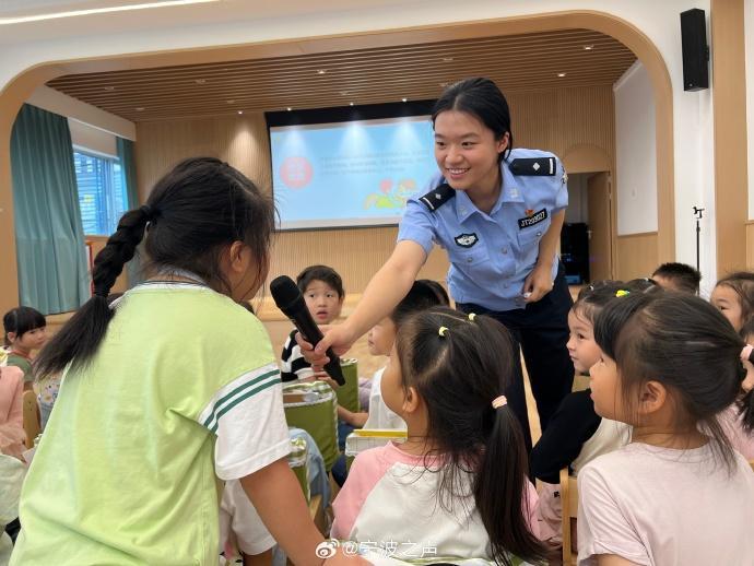 近日,浙江省寧波市公安局鄞州分局福明派出所與轄區(qū)樂禾幼兒園共同舉辦主題為“防拐防騙,為愛護航”的安全演練活動。民警用生動有趣的故事和朗朗上口的兒歌,將防拐騙安全意識植入孩子們心間。圖為活動現(xiàn)場。