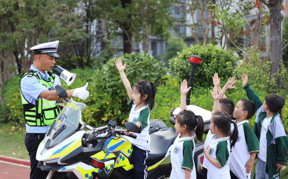 近日,江西省新余市公安局交警支隊(duì)組織民警前往轄區(qū)校園講授“知危險(xiǎn)會(huì)避險(xiǎn)”安全教育課,通過場(chǎng)景模擬、趣味游戲等形式,讓同學(xué)們?cè)谠⒔逃跇分袑W(xué)習(xí)交通安全知識(shí)。圖為活動(dòng)現(xiàn)場(chǎng)。