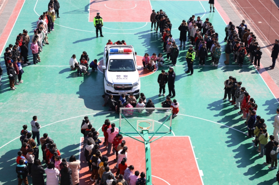 為進一步筑牢寒假期間交通安全防線,江西省遂川縣公安局交警大隊近日組織民警走進轄區(qū)中小學校,開展交通安全宣傳活動。圖為1月10日,民警在遂川縣大汾鎮(zhèn)寨溪小學向?qū)W生講解機動車駕駛盲區(qū)知識。