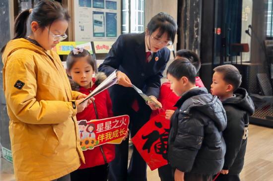 近日,江蘇省南京市雨花臺區(qū)人民檢察院聚焦寒假安全教育,深入開展送法進校園、進社區(qū)活動,通過法律知識競答、法治冬令營等多元形式,用專業(yè)和溫度為孩子們送上“寒假安全指南”。圖為檢察官為孩子們講解法律知識。 本報記者 羅莎莎 本報通訊員 李娜 攝