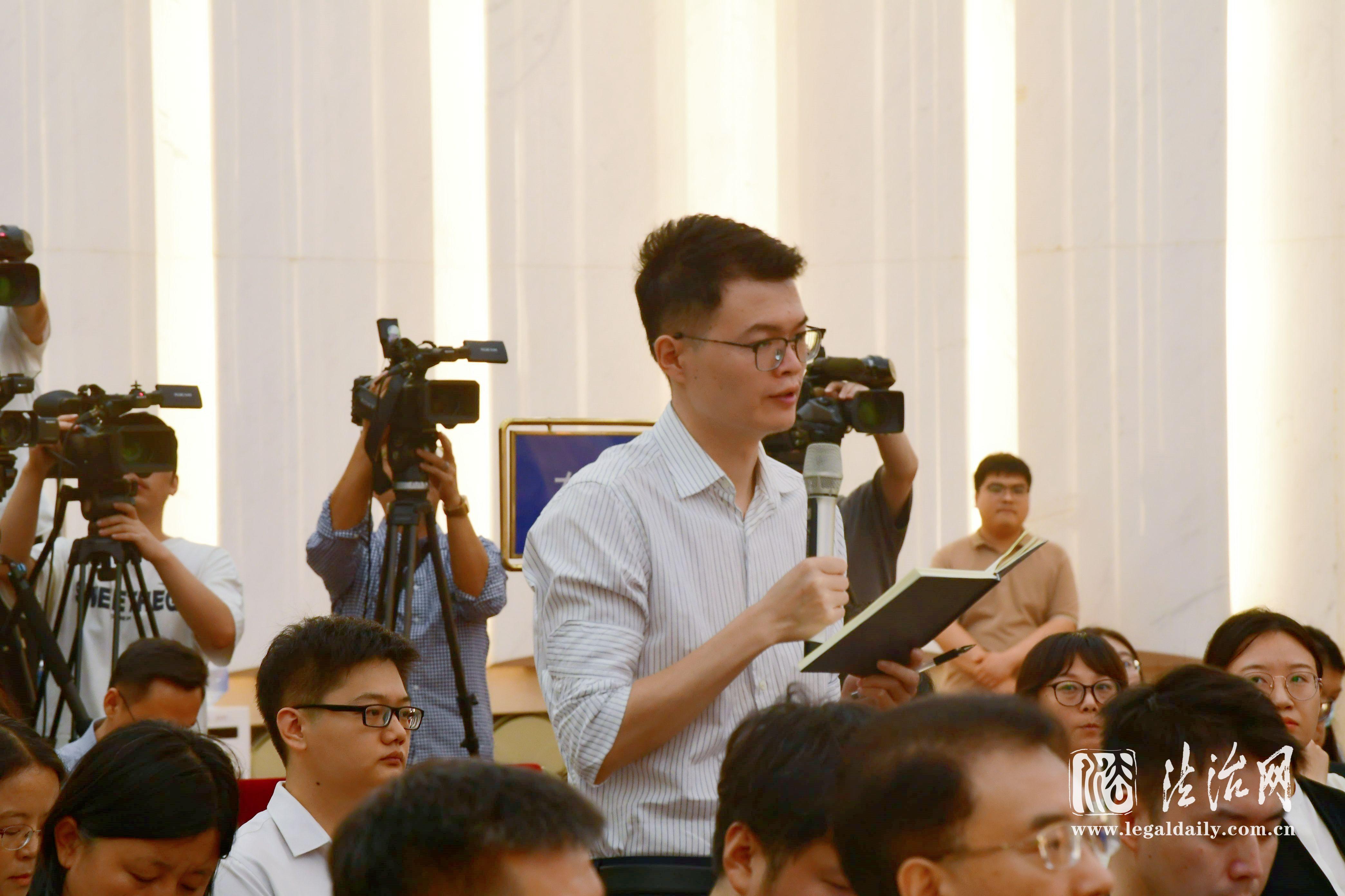 9月13日下午,全國(guó)人大常委會(huì)辦公廳舉行新聞發(fā)布會(huì)。圖為人民日?qǐng)?bào)記者提問。張峻銘 攝
