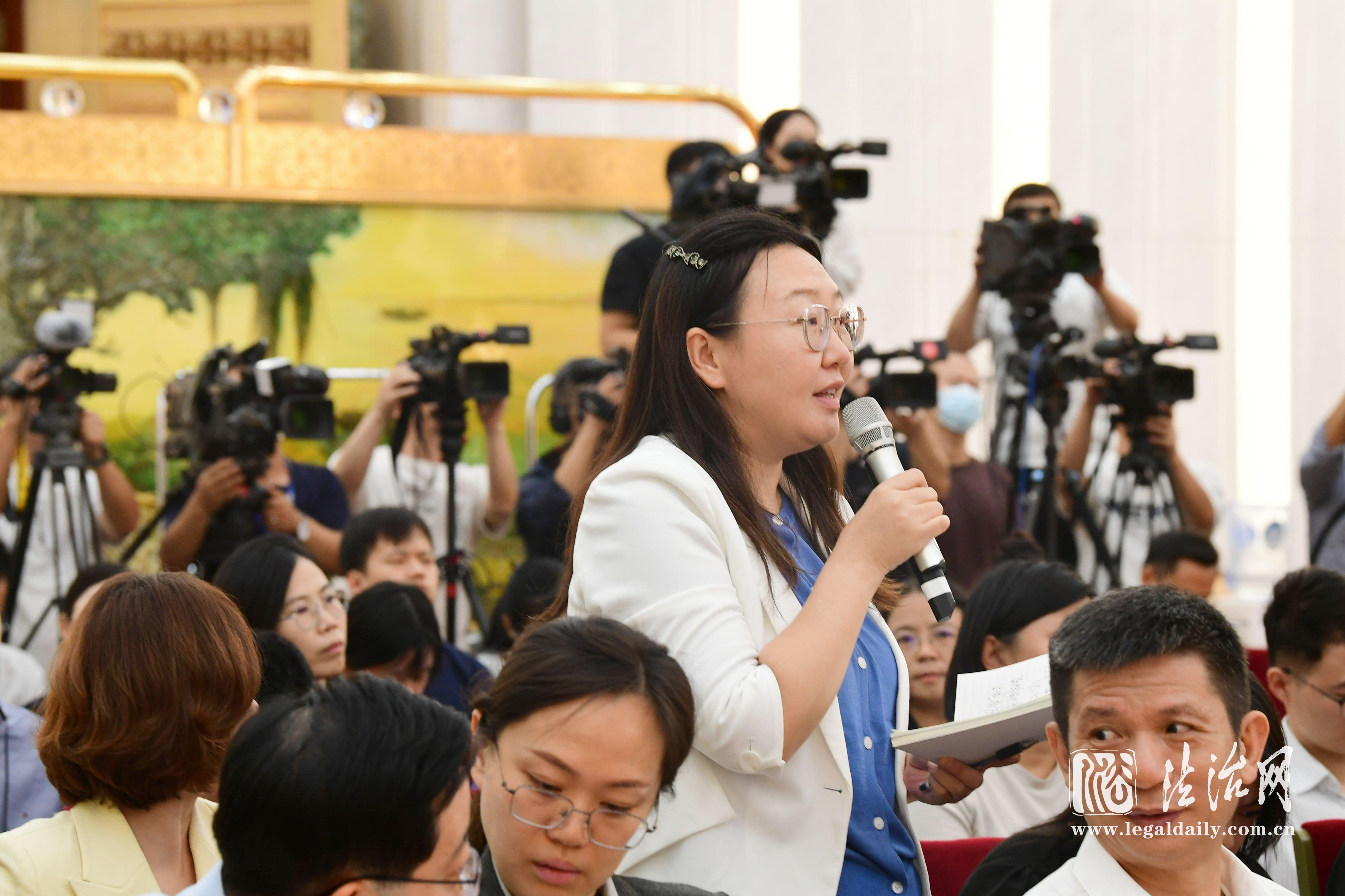 9月13日下午,全國人大常委會辦公廳舉行新聞發(fā)布會。圖為經(jīng)濟(jì)日報記者提問。張峻銘 攝