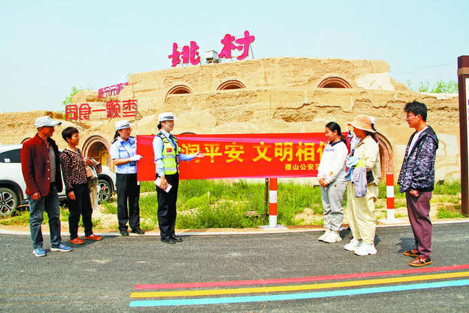 圖為民警在景區(qū)向游客宣講交通安全知識。李東興 攝