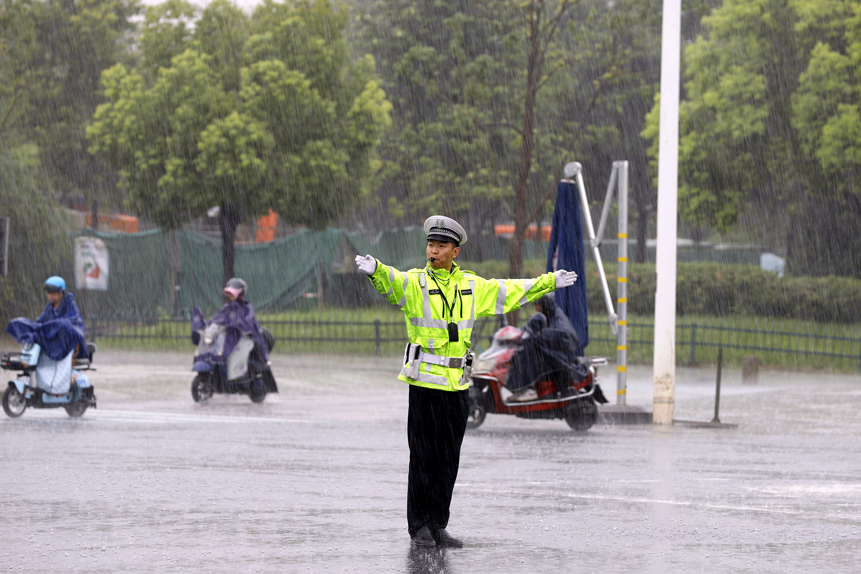 7月12日,安徽省蕪湖市迎來又一輪強(qiáng)降雨天氣。蕪湖市公安局交警支隊(duì)鳩江大隊(duì)全警上路,疏堵保暢,排查隱患,服務(wù)市民,確保過往車輛安全通行。