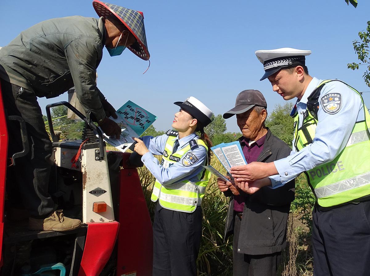 10月9日,安徽省蕪湖市公安局交警支隊(duì)鏡湖大隊(duì)抓住農(nóng)村秋收季節(jié)特點(diǎn),組織民警走進(jìn)轄區(qū)田間地頭開(kāi)展交通法規(guī)宣傳,提高群眾的交通安全意識(shí)。