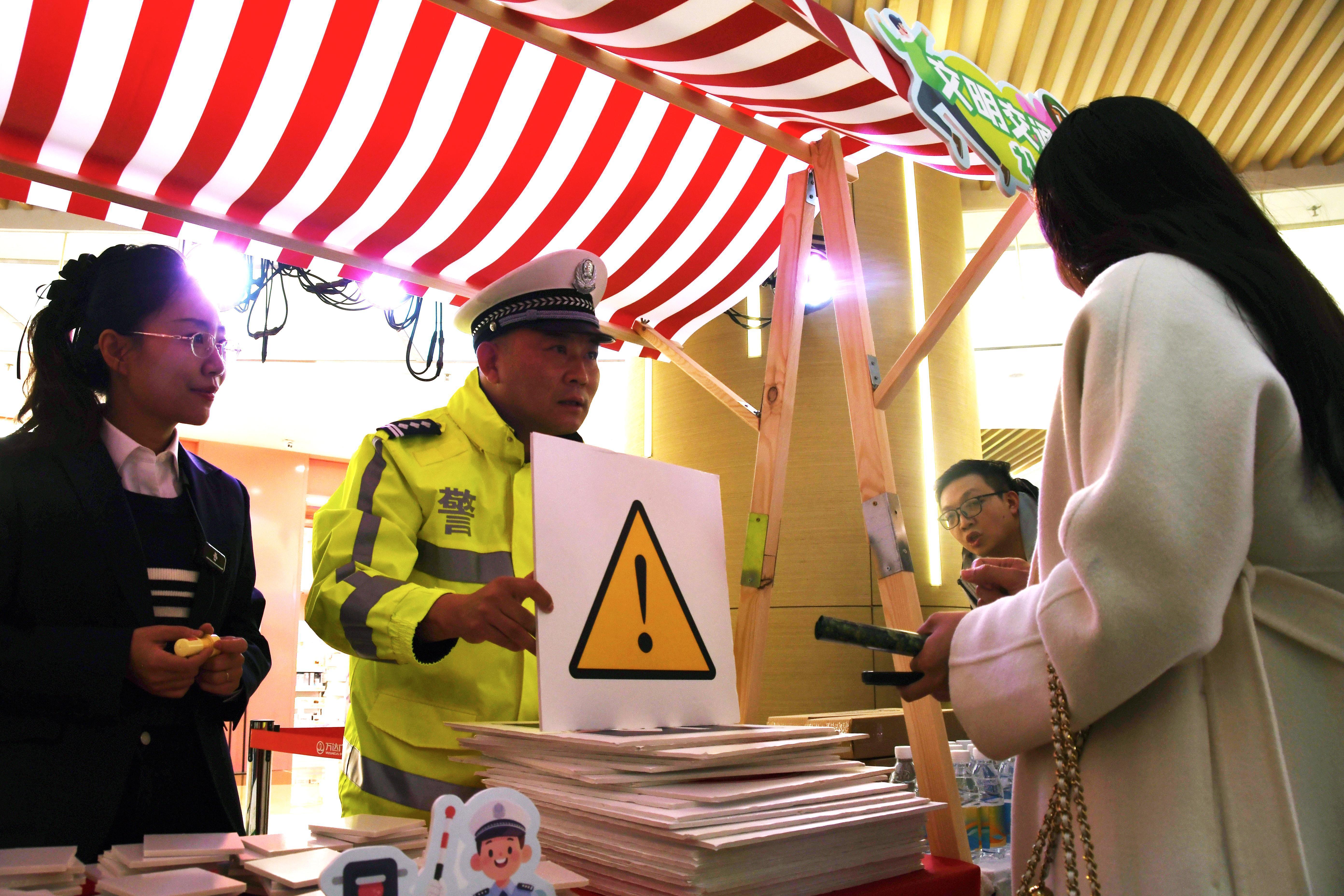 圖為交警與現(xiàn)場群眾開展互動。