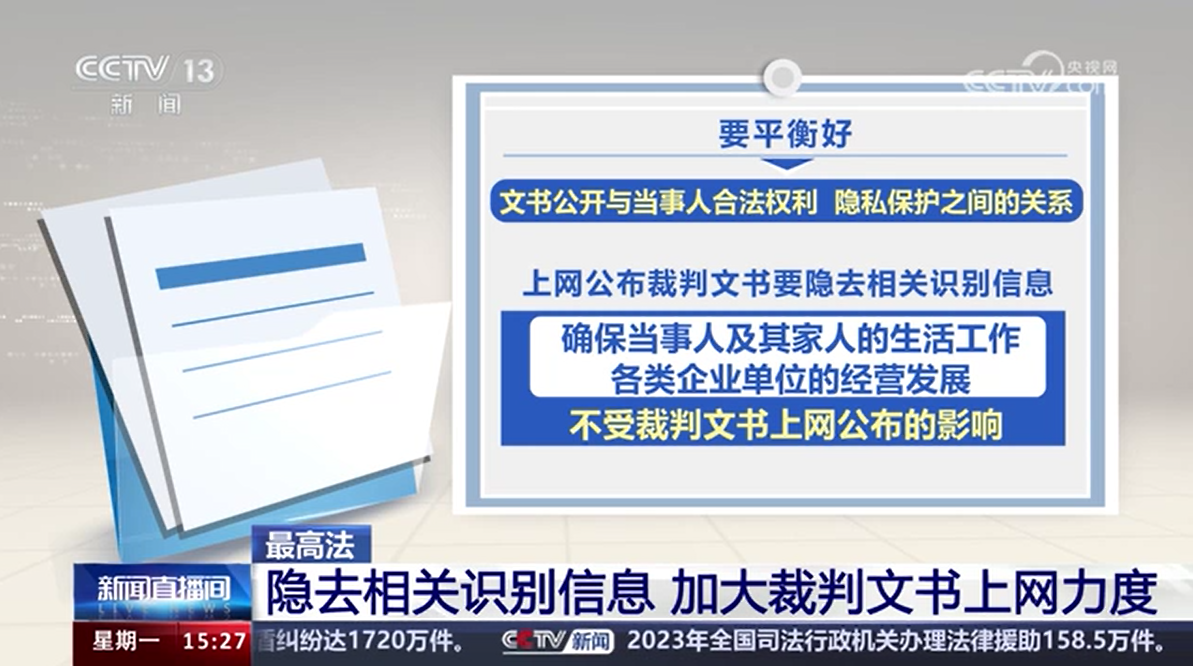 最高法 隱去相關識別信息 加大裁判文書上網力度