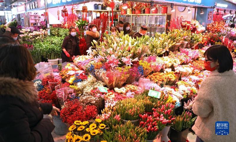 新春將至,遼寧省沈陽市各花卉市場(chǎng)一片姹紫嫣紅,市民紛紛選購鮮花綠植,迎接兔年春節(jié)的到來。