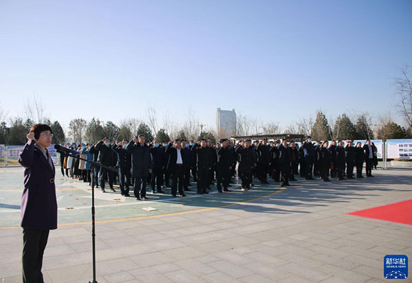 山東省濱州市舉行2021年國(guó)家憲法日領(lǐng)導(dǎo)干部憲法宣誓儀式(12月3日攝)。新華社發(fā)(劉偉 攝)