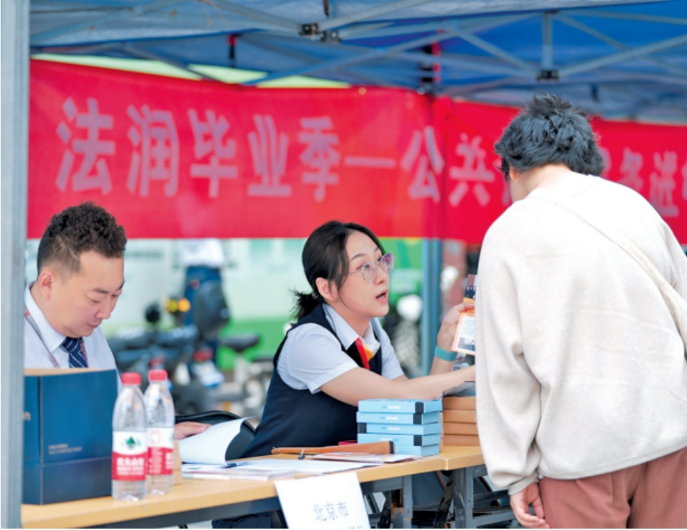 六月五日,在北京市司法局與首都師范大學(xué)聯(lián)合舉辦的“法潤(rùn)畢業(yè)季”活動(dòng)中,公證處工作人員在校內(nèi)設(shè)立流動(dòng)公證服務(wù)點(diǎn),為有需求的同學(xué)提供便捷的公證指引。據(jù)悉,只要當(dāng)事人的材料齊全,符合受理?xiàng)l件及出證條件,跑一次就可以辦好公證書。 (北京市司法局供圖)