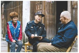 圖為民警與“鄉(xiāng)親大走訪”隊員一起走訪了解社情民意。 陳權(quán) 攝