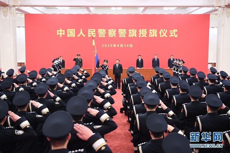8月26日,中國人民警察警旗授旗儀式在人民大會堂舉行。中共中央總書記、國家主席、中央軍委主席習(xí)近平向中國人民警察隊伍授旗并致訓(xùn)詞。 新華社記者 張領(lǐng) 攝