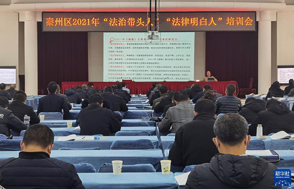 甘肅省天水市秦州區(qū)舉辦2021年“法律明白人”培訓(xùn)會(huì)(12月8日攝)。新華社發(fā)