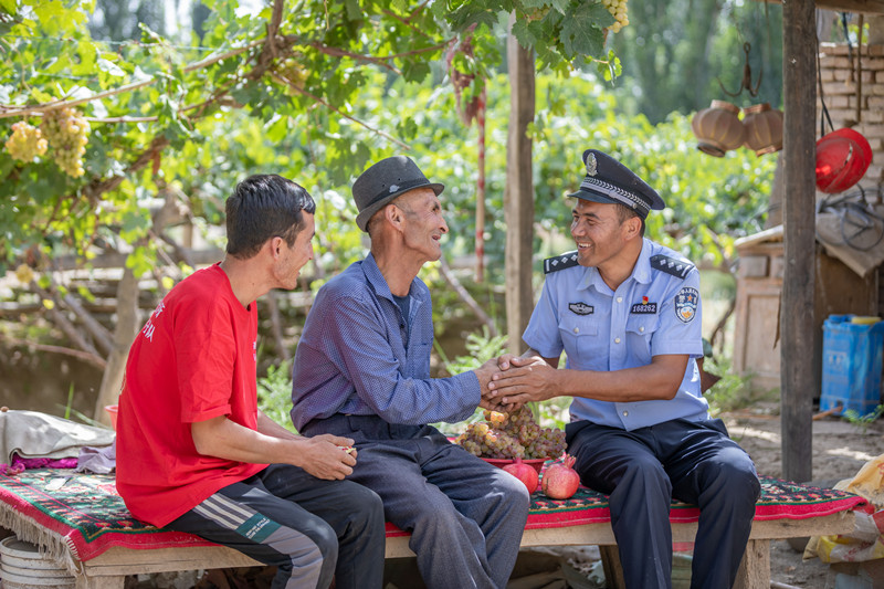 連日來,新疆維吾爾自治區(qū)葉城縣公安局積極組織民輔警走進(jìn)田間地頭,在幫助群眾干農(nóng)活的同時開展反詐宣傳,向群眾講解反詐知識,提醒群眾提高安全防范意識。