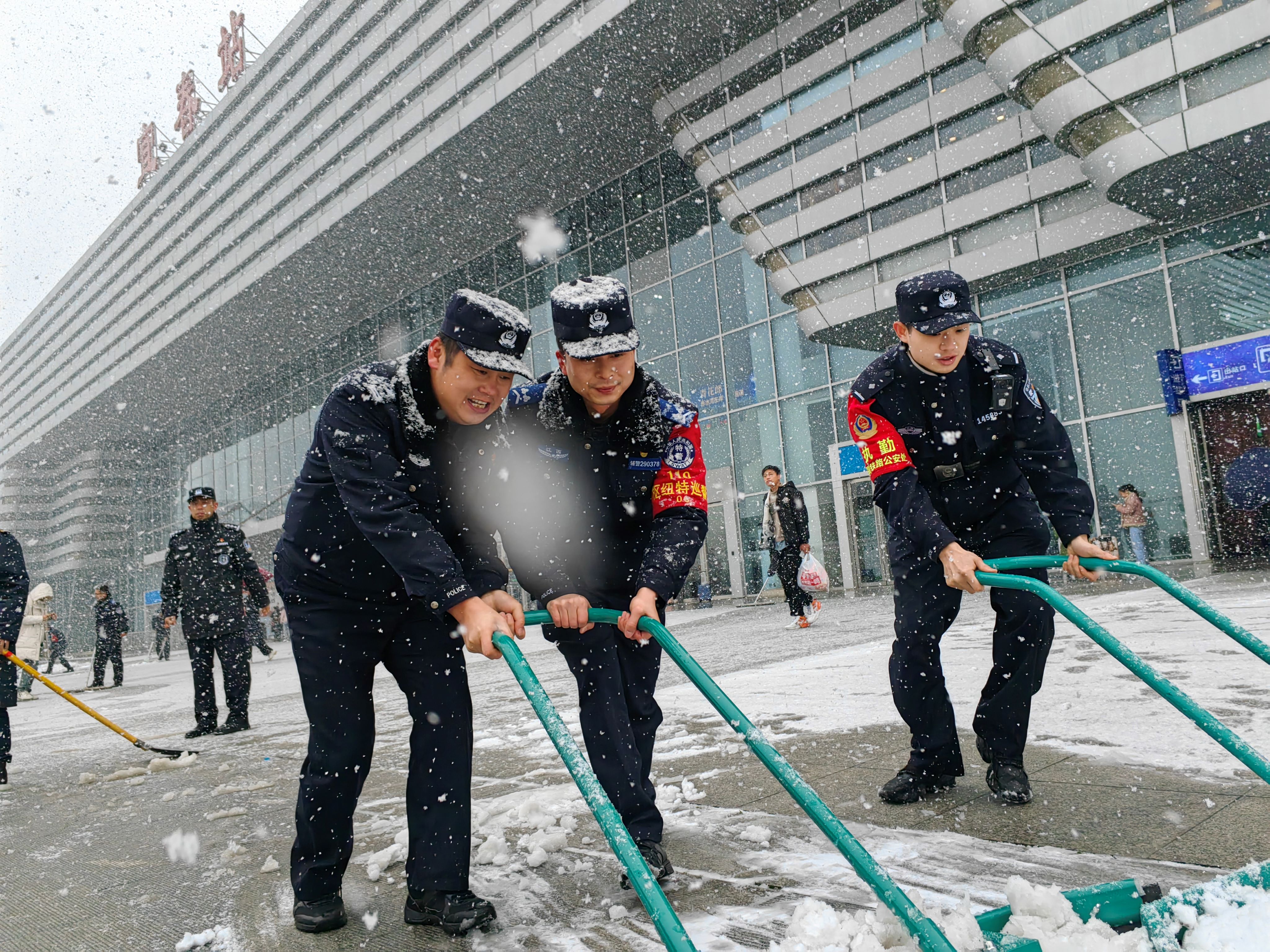 1月22日,江西省境內(nèi)自北向南普降大雪,南昌鐵路公安處各單位第一時(shí)間組織民警對客流密集區(qū)域,開展積雪清掃工作,為旅客開辟安全通道,并密切關(guān)注列車晚點(diǎn)、停運(yùn)信息,第一時(shí)間掌握站區(qū)旅客滯留情況,組織旅客有序乘降,確保治安秩序平穩(wěn)有序。同時(shí),鐵路警方還加大警力投入,聯(lián)合武警、地方公安、聯(lián)勤等力量,開展武裝巡邏,提高見警率,增強(qiáng)旅客安全感。此外,加強(qiáng)對鐵路沿線橋梁、涵洞、作業(yè)門等重點(diǎn)部位和線路重點(diǎn)區(qū)段的巡查,全面排查治安隱患,確保鐵路運(yùn)輸安全暢通。