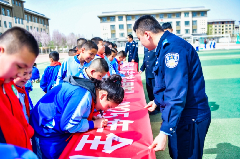 圖為民警組織學(xué)生在“全民國(guó)家安全教育 走深走實(shí)十周年”橫幅上簽名。