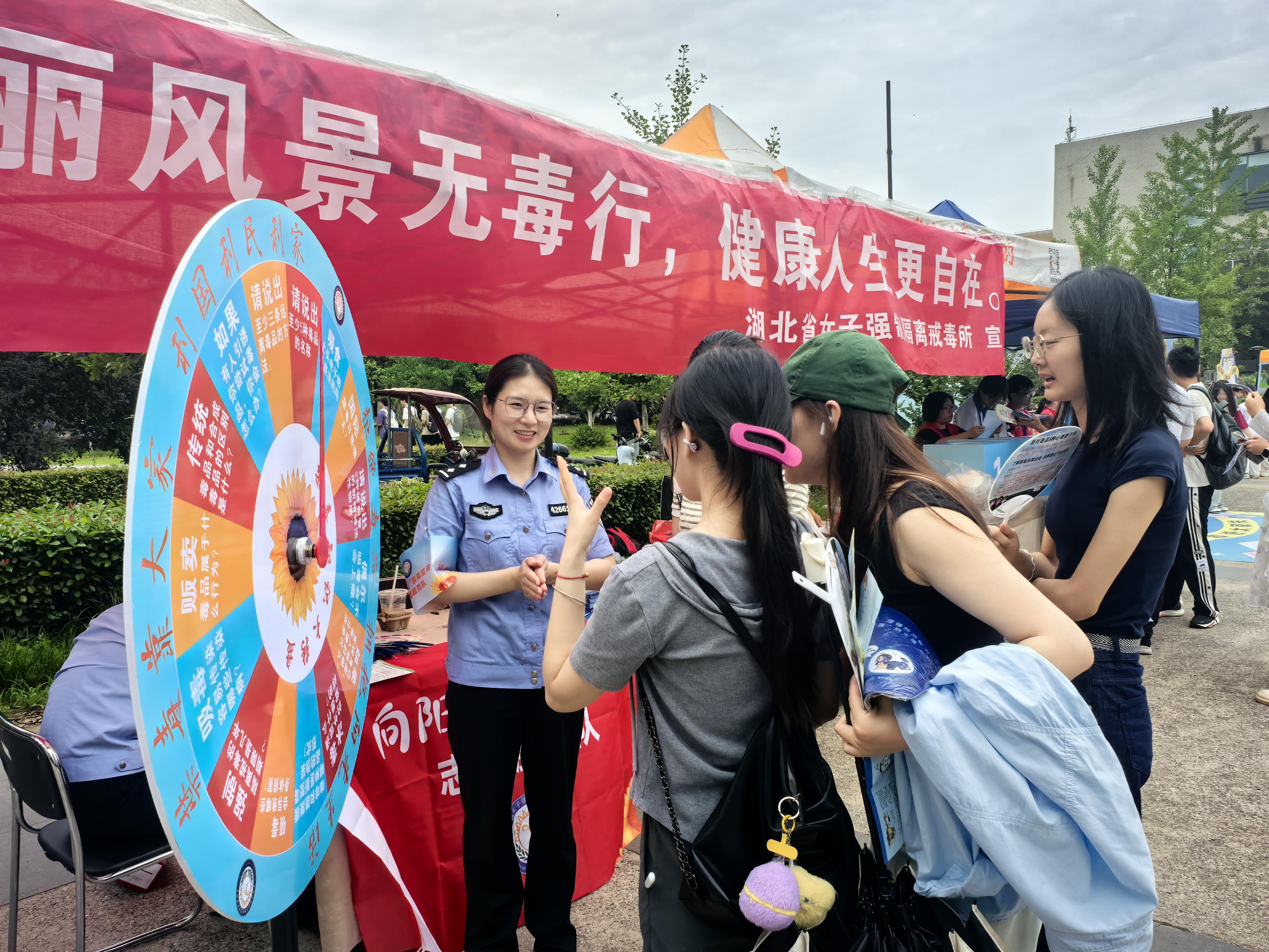 近日,湖北省女子強(qiáng)制隔離戒毒所聯(lián)合洪山區(qū)反恐禁毒辦等部門走進(jìn)武漢科技大學(xué),開展“向陽逐光 無毒芳華”禁毒宣傳活動,通過“科普展覽+互動講座”,為青少年撐起一片無毒藍(lán)天。李唯一 攝