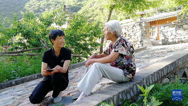 劉桂珍(左)和村民聊家常(2022年7月6日攝)。新華社發(fā)