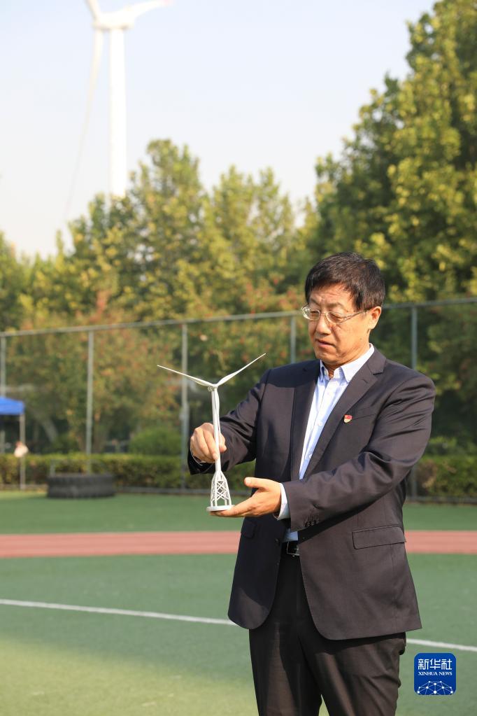 武鋼在位于北京經(jīng)濟(jì)技術(shù)開(kāi)發(fā)區(qū)的金風(fēng)科技智慧園區(qū)內(nèi)展示風(fēng)機(jī)模型(2022年9月20日攝)。新華社發(fā)