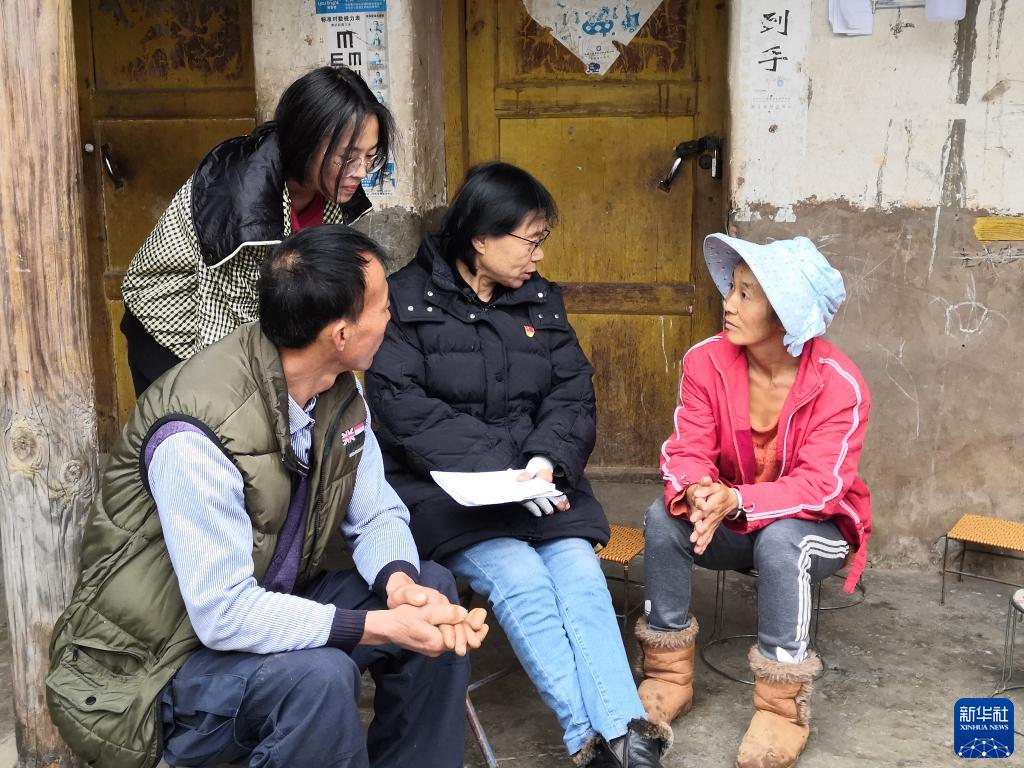 云南麗江華坪女子高級(jí)中學(xué)黨支部書記、校長(zhǎng)張桂梅(右二)在家訪時(shí)與學(xué)生家長(zhǎng)交談(2021年2月9日攝)。新華社發(fā)(王秀麗 攝)