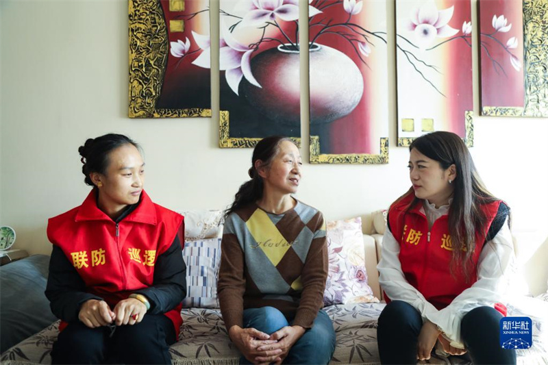 10月16日,青海省西寧市城西區(qū)文匯路街道文亭巷社區(qū)黨委書記劉翠青(右)到社區(qū)居民家中走訪。新華社記者 張龍 攝