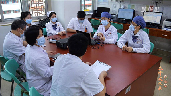聆聽(tīng)黨的二十大報(bào)告后,葉玲深受鼓舞,干勁倍增。回到基層,她第一時(shí)間向本院的醫(yī)務(wù)工作者們宣講黨的二十大報(bào)告精神。