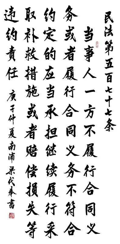 第五百七十七條 當(dāng)事人一方不履行合同義務(wù)或者履行合同義務(wù)不符合約定的,應(yīng)當(dāng)承擔(dān)繼續(xù)履行、采取補(bǔ)救措施或者賠償損失等違約責(zé)任。