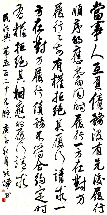 民法典第五百二十五條 當事人互負債務,沒有先后履行順序的,應當同時履行。一方在對方履行之前有權拒絕其履行請求。一方在對方履行債務不符合約定時,有權拒絕其相應的履行請求。