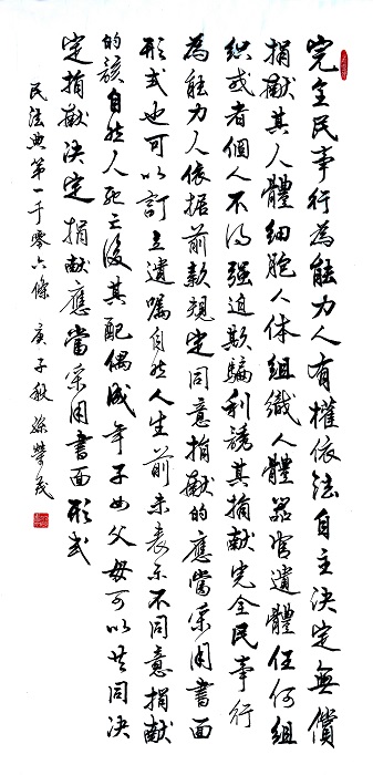 民法典第一千零六條 完全民事行為能力人有權(quán)依法自主決定無償捐獻其人體細胞、人體組織、人體器官、遺體。任何組織或者個人不得強迫、欺騙、利誘其捐獻。完全民事行為能力人依據(jù)前款規(guī)定同意捐獻的,應(yīng)當采用書面形式,也可以訂立遺囑。自然人生前未表示不同意捐獻的,該自然人死亡后,其配偶、成年子女、父母可以共同決定捐獻,決定捐獻應(yīng)當采用書面形式。